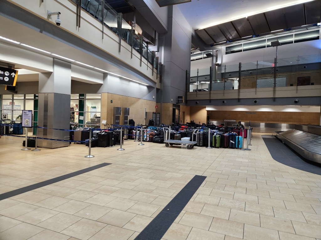Luggage backlog at Seattle Airport.