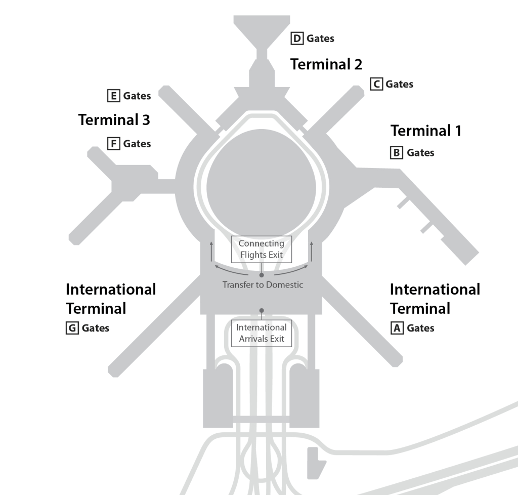 - Go to your connecting flights’ terminal (as shown below, your domestic flight will definitely be in a different terminal)