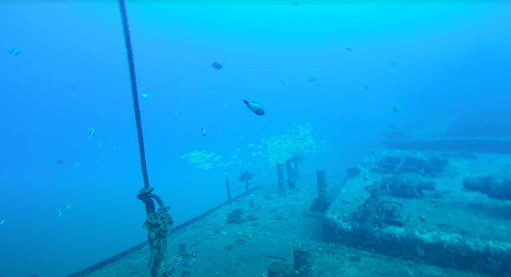 On our second deep dive that day, the depth will be a little over 100ft, the procedure is the same, rope guide down to a 80ft location, then divers swam to the shipwreck.